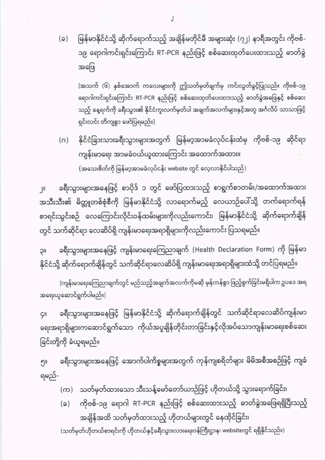 非缅甸籍旅客,须出示从缅甸保险公司购买的新冠肺炎健康保险证明。
