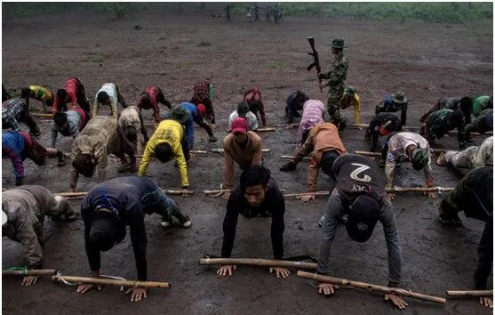 去年10月,人民国防军志愿者在克耶邦德蒂索镇区进行训练。/法新社(AFP)