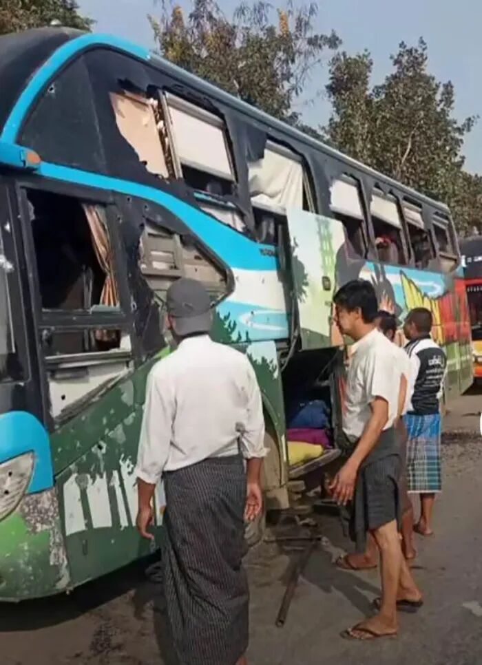 据缅甸媒体报道,实皆省消息,从敏务镇驶往蒙育瓦方向的一辆客运大巴,遭地雷袭击,出现损伤。