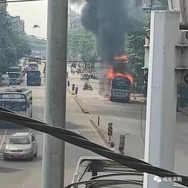 缅甸仰光市区一公交车爆炸起火 无人员伤亡