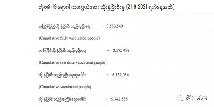 缅甸还向中国国药集团订购了 2400 万支 VIS-19 疫苗,其中 400 万支于 9 月 12 日抵达第一批。