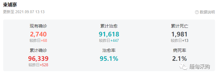 柬埔寨的疫情形势同样不容乐观。9月6日,柬埔寨新增528例确诊。截至9月7日下午13时,柬埔寨累计确诊约9.6万例,累计治愈约9.1万例,累计死亡1981例。目前Delta变异病毒已扩散至23个省市,仅剩白马省和桔井省未受波及。