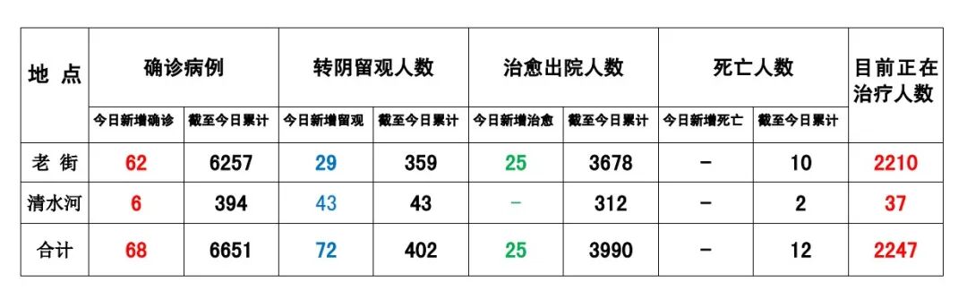 从2021年6月16日至8月21日下午17点,果敢自治区老街镇区内疫情最新情况如下表所示: