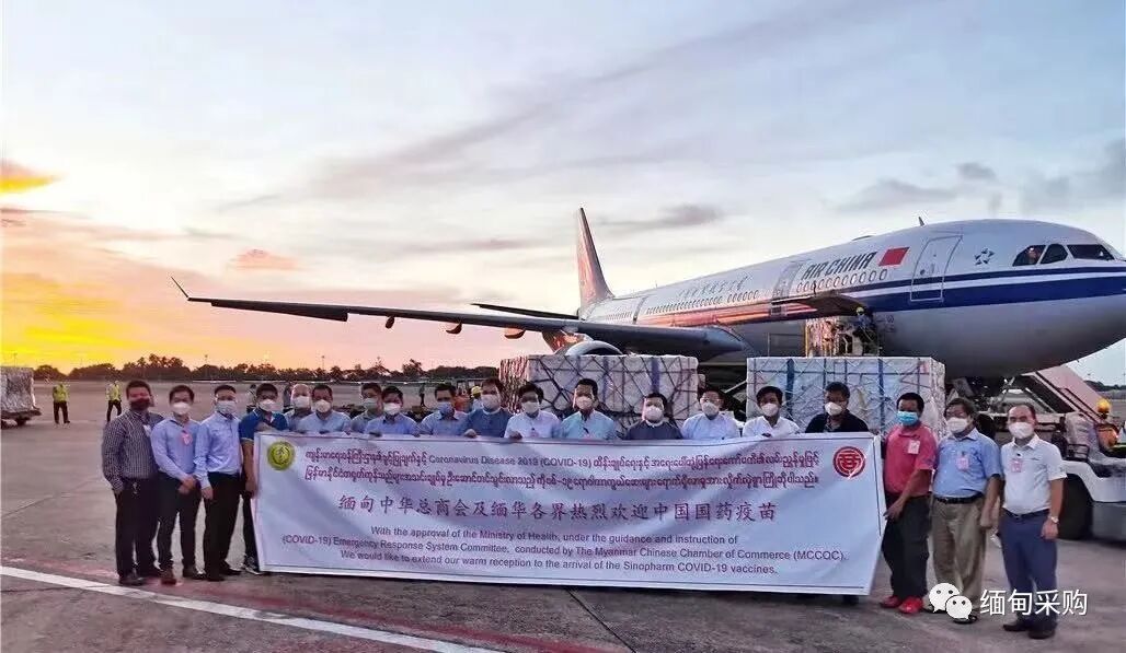 缅甸社会团体集资购买的首批中国新冠疫苗运抵仰光
