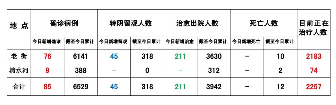 从2021年6月16日至8月19日下午17点,果敢自治区老街镇区内疫情最新情况如下表所示: