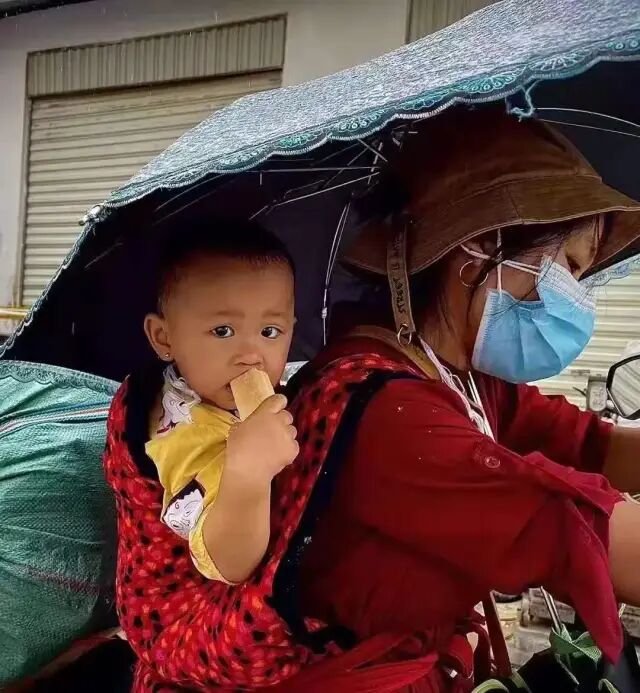雨中,一些缅甸人带着自己的东西,有序撤离………看着幼小的孩子,有一点心酸……生活不容易………愿平安到家!