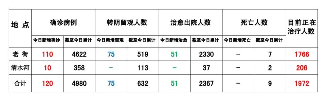 从2021年6月16日至8月6 日下午17点,果敢自治区老街镇区内疫情最新情况如下表所示: