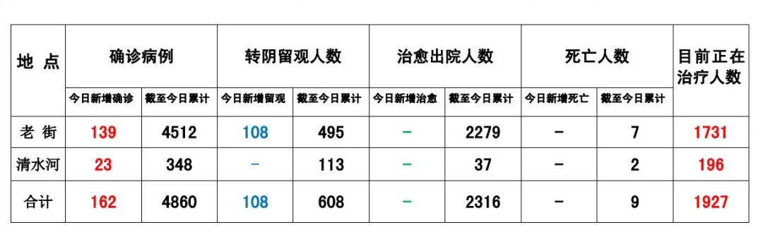 从2021年6月16日至8月5 日下午17点,果敢自治区老街镇区内疫情最新情况如下表所示: