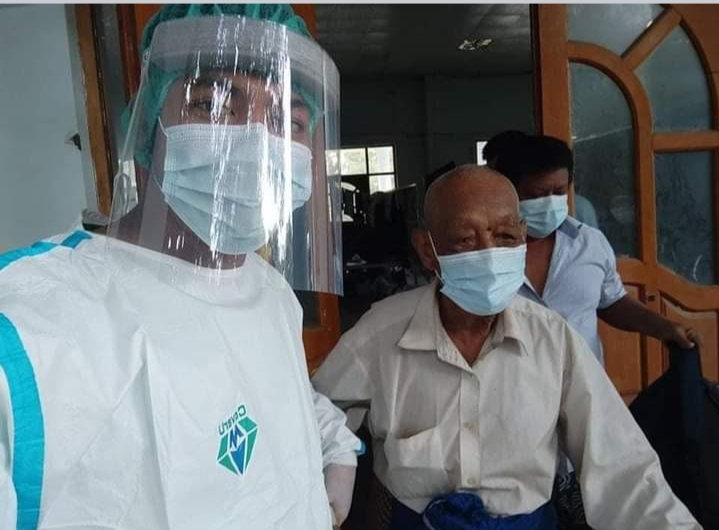 若开邦皎漂市百岁新冠患者被治愈