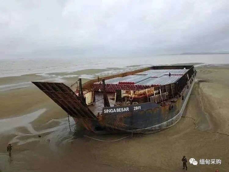 受海上恶劣天气影响 一拖船在缅甸孟邦海滩搁浅