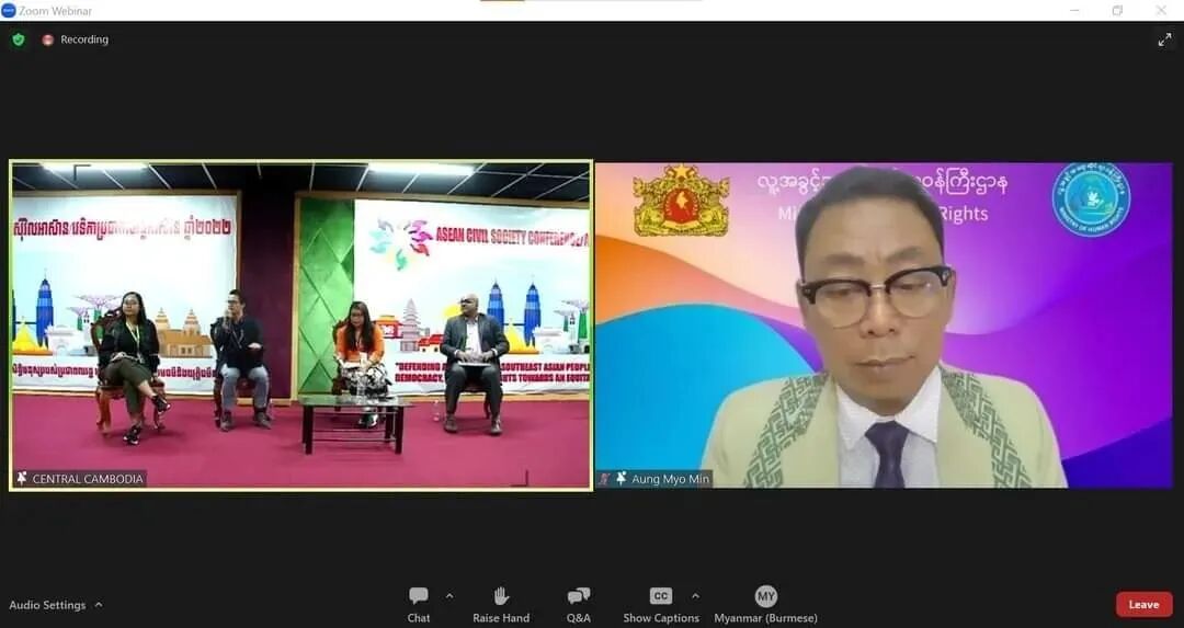 11月4日,民族团结政府(NUG)人权部长吴昂谬敏(U Aung Myo Min)在线出席了在柬埔寨金边举行的“东盟民间公开会议”。