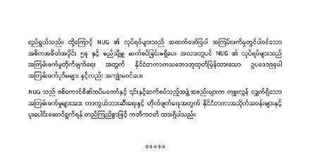 NUG宣布缅甸国防军及其附属机构为恐怖组织