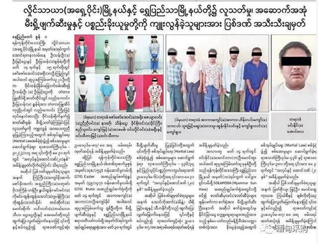 另外,法庭还判处以温奈为首的7人20年监禁和劳役,他们被控于3月14日在仰光雪比达工业区另一家制衣厂盗窃外币现金并使用携带的燃气瓶进行喷射,其中有5人在逃,目前法庭已发出通缉令。