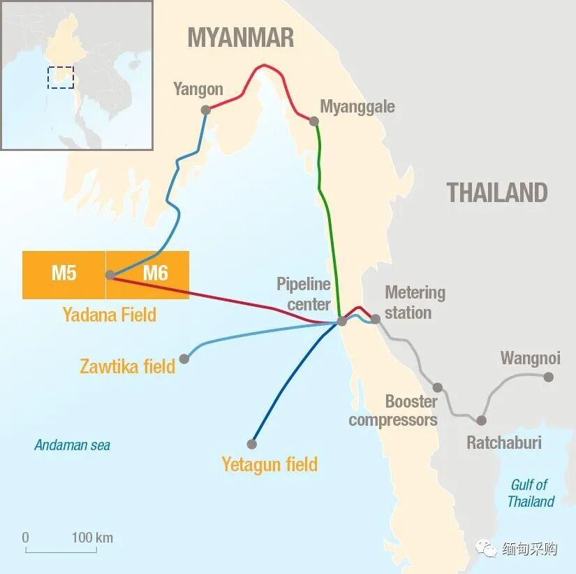 莫塔玛天然气运输有限公司在缅甸境内经营一条从安达曼海亚达纳(Yadana)气田穿越缅甸直到泰国的油气管道,全长400公里。该公司的四家股东分别是法国道达尔公司(占股31.24%)、美国雪佛龙公司(占股28.26%)、泰国PTTEP公司(占股25.5%)和缅甸石油天然气公司(占股15%)。道达尔公司在声明中说,该油气管道将正常运营,为缅甸和泰国人民提供电力供应。