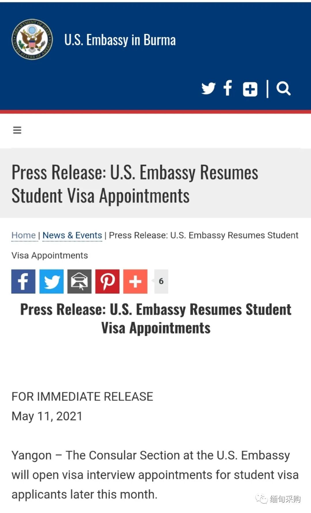 美国驻缅甸使馆5月11日在官方网站发布公告称,领事部门已经重启缅甸籍学生赴美留学签证(F1签证)申请,并将于5月进行签证面试。