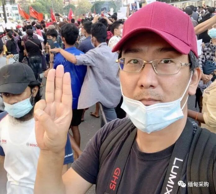 日籍自由记者北角裕树在仰光街头,采访缅甸民众反军事政变抗议活动。(图取自网络)