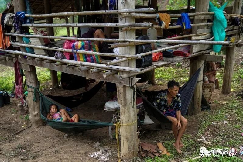 在泰国西北同缅甸接壤的夜丰颂府,从缅甸过河而来的村民在简陋的木棚栖身。(路透社)