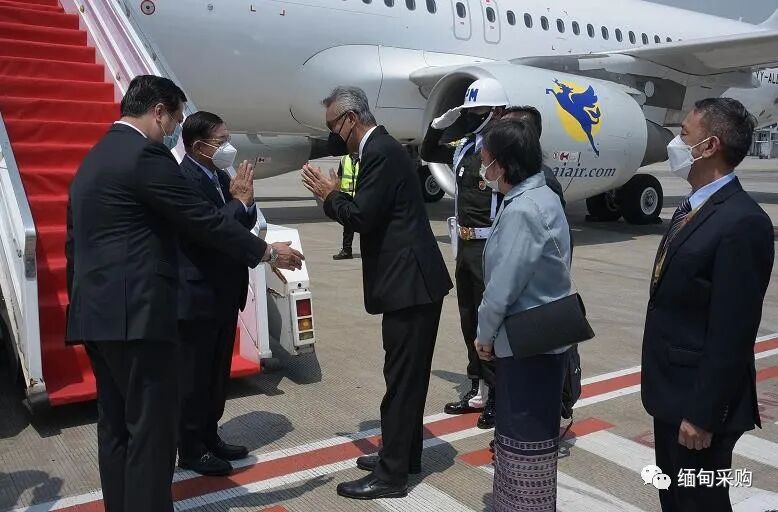 △缅甸国家管理委员会主席敏昂莱于4月24日抵达印尼首都雅加达参加东盟领导人缅甸问题特别峰会