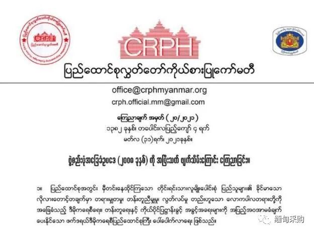 3月21日,缅甸国家管理委员会宣布认定联邦议会代表委员会为非法组织。