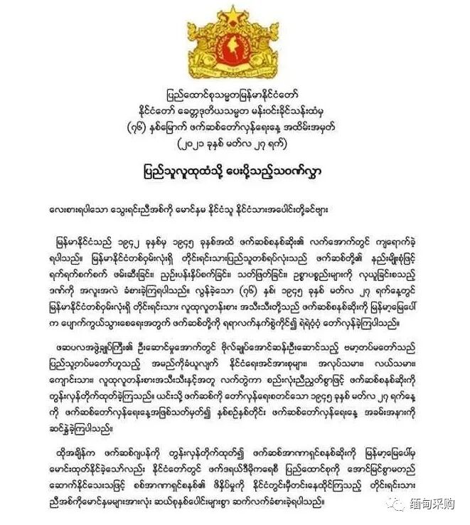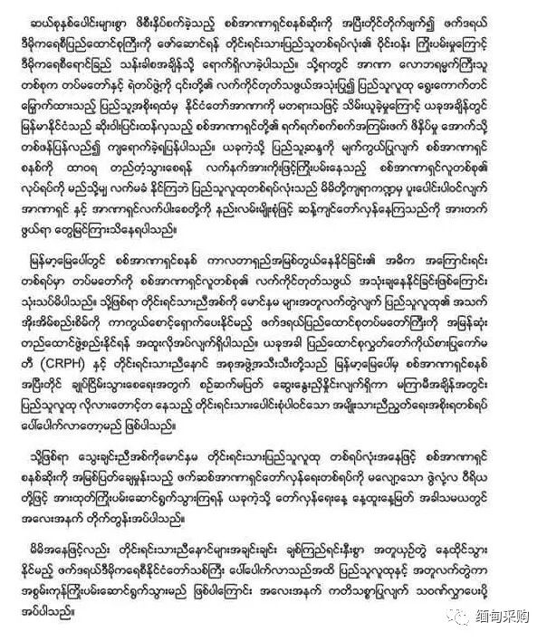 本公众号"缅甸采购"推送内容来源于网络,不代表任何政治立场,仅供阅读、欣赏!我们对文中观点保持中立,对所包含内容准确性、可靠性或完整性不提供任何明示或暗示的保证,并不对文章观点负责。版权属原作者。如有侵权,请联系我们及时修正。微信号:t990528