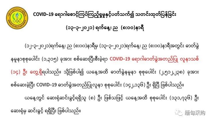 3月13日晚缅时8时,缅甸卫生与体育部疫情通报如下: