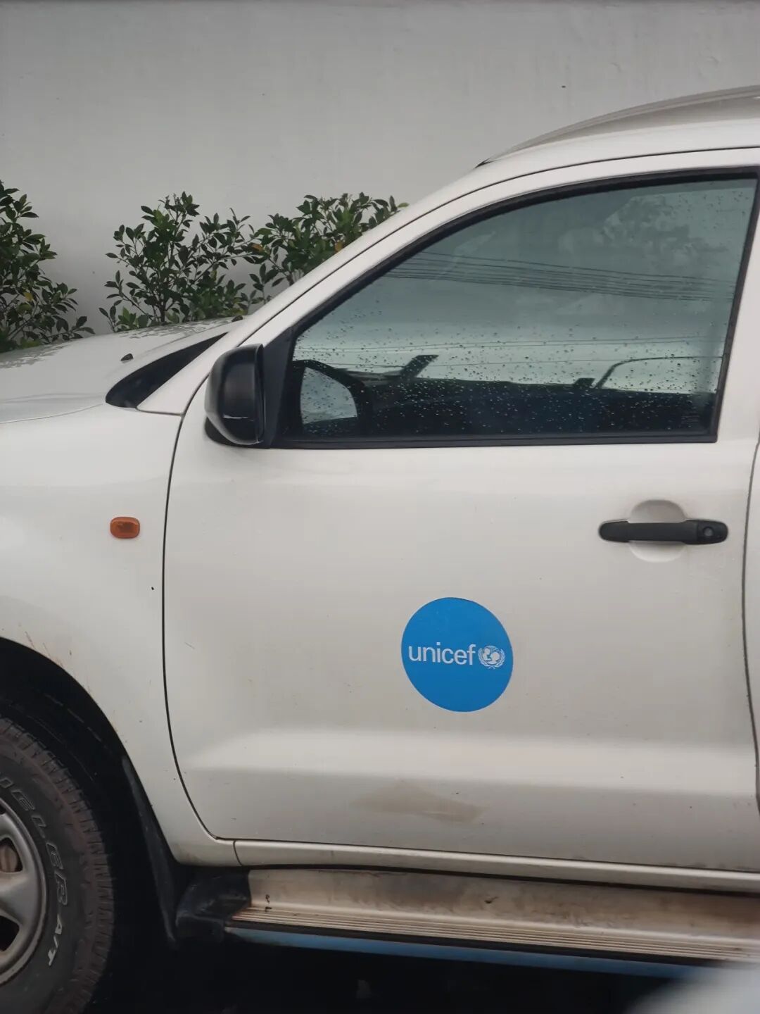 在万象,我坐公交车时,怎么随随便便就看见了联合国儿童基金会的标志,一眼就认出了这个熟悉的小蓝标。