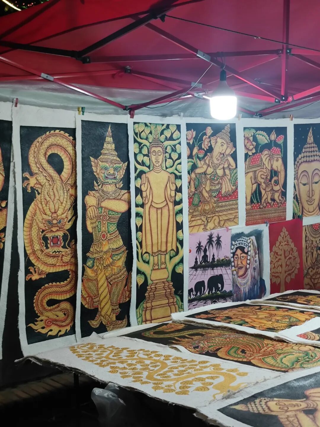 @琅勃拉邦夜市,人们在昔日王宫前卖画🎨