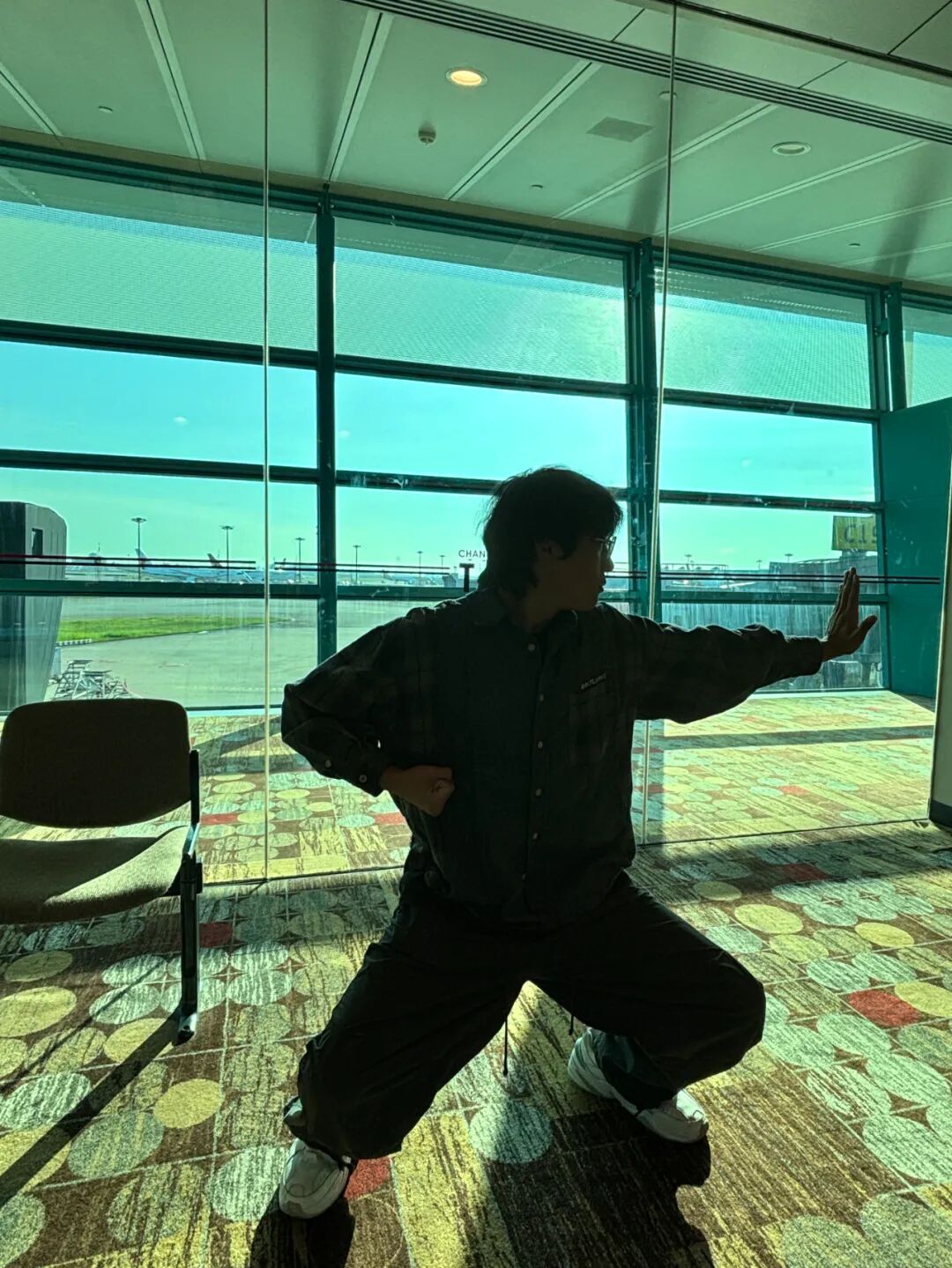 @1月清晨,远航在新加坡樟宜机场打八段锦