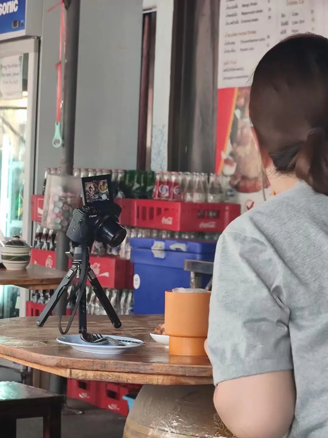 原本摆摊的泰国老板娘站在后面,呆呆地听着主播一顿顿激烈输出。