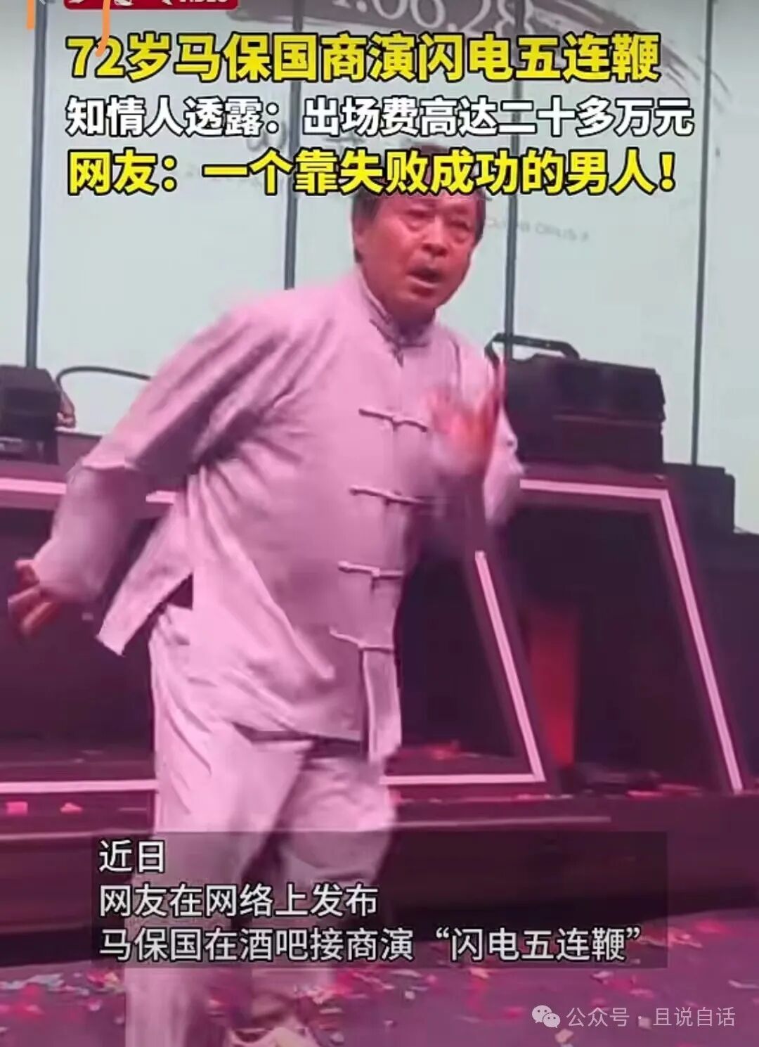 今天看到一个视频,视频名称为“72岁马某某商演闪电五连鞭,知情人透露:出场费高达二十多万元”。