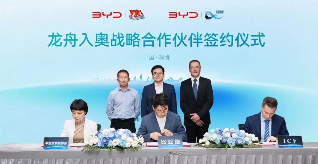 6月5日,比亚迪携手国际皮划艇联合会及中国皮划艇协会在深圳签署合作协议,共同推动龙舟运动成为奥运项目。在国际皮划艇联合会与比亚迪的签约仪式中,主席托马斯科涅茨科发表了以下观点:“我们期望与比亚迪的携手合作能进一步巩固龙舟在国际赛事中的重要地位。为此,我们有意从明年开始将龙舟纳入皮划艇静水世界杯及2025年成都世界运动会的竞赛项目,这是龙舟迈向奥运舞台的关键一步。展望未来,国际划联将借助自身的优势,与比亚迪共同推动龙舟运动发展成为一项备受全球人民欢迎的常规化体育项目,并在国际顶级赛事中大放异彩”。