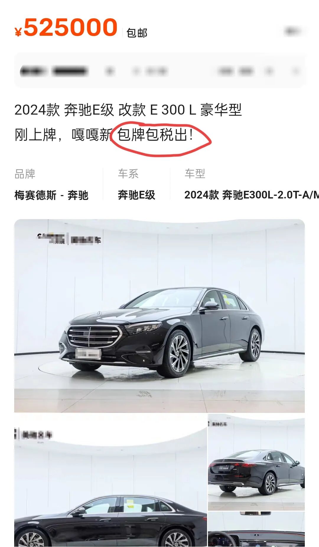 但仔细一看,经销商们承受了不小的压力,因为该车单纯卖裸车几乎已经不赚钱了,必须靠着保险、车贷、卖装潢配件包、售后维修才能赚到钱。甚至全国不少的汽贸店和二手车展厅,突然冒出来了包牌包税的全新车奔驰E300L,50万出头就能买得到,性价比很出色。