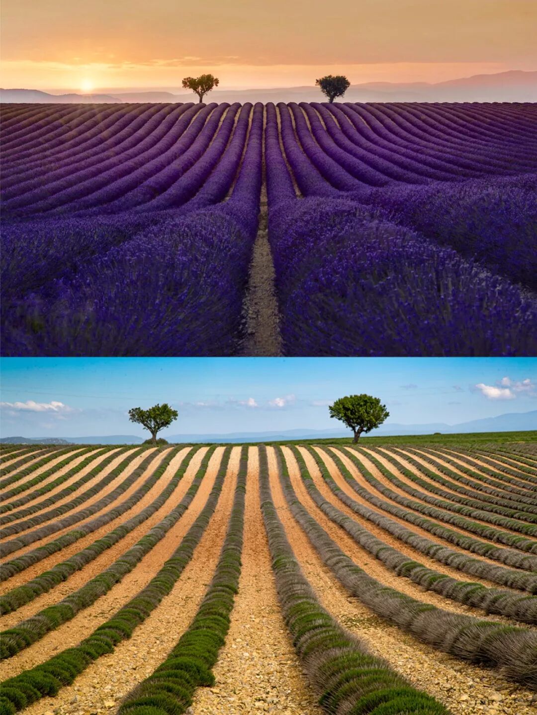 下面这些对比图,就是踩点时根据各种线索找到的普罗旺斯排名前5位的薰衣草拍摄地: