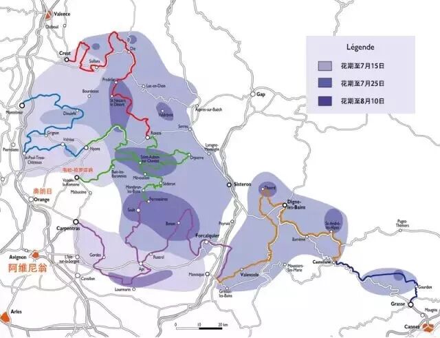 铺天盖地的信息都告诉你,“7月-8月是薰衣草盛开的季节”。但实际上,绝大多数的薰衣草的花期是从6月中延续到7月中旬,只有少量的薰衣草能坚持到8月上旬(如下图所示)。