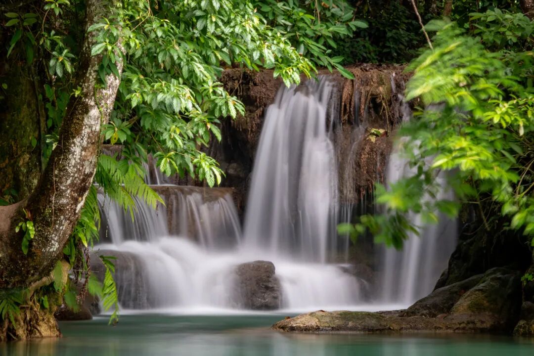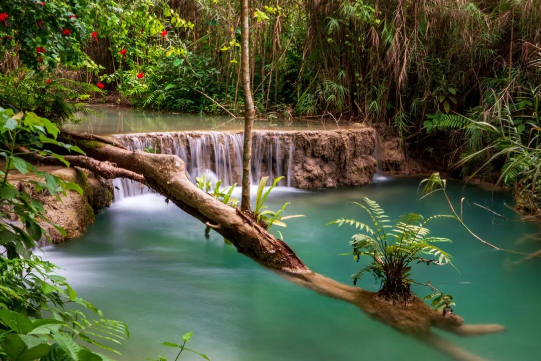 光西瀑布,宛如一位匿身于山林的仙子,于琅勃拉邦城南30公里的山中翩翩起舞。瀑布由一个大瀑布与六七个小瀑布构成的多层瀑布群,一波三折、三层瀑布欢跃着倾泻而下,于原始雨林中形成诸多线条婀娜的水潭。