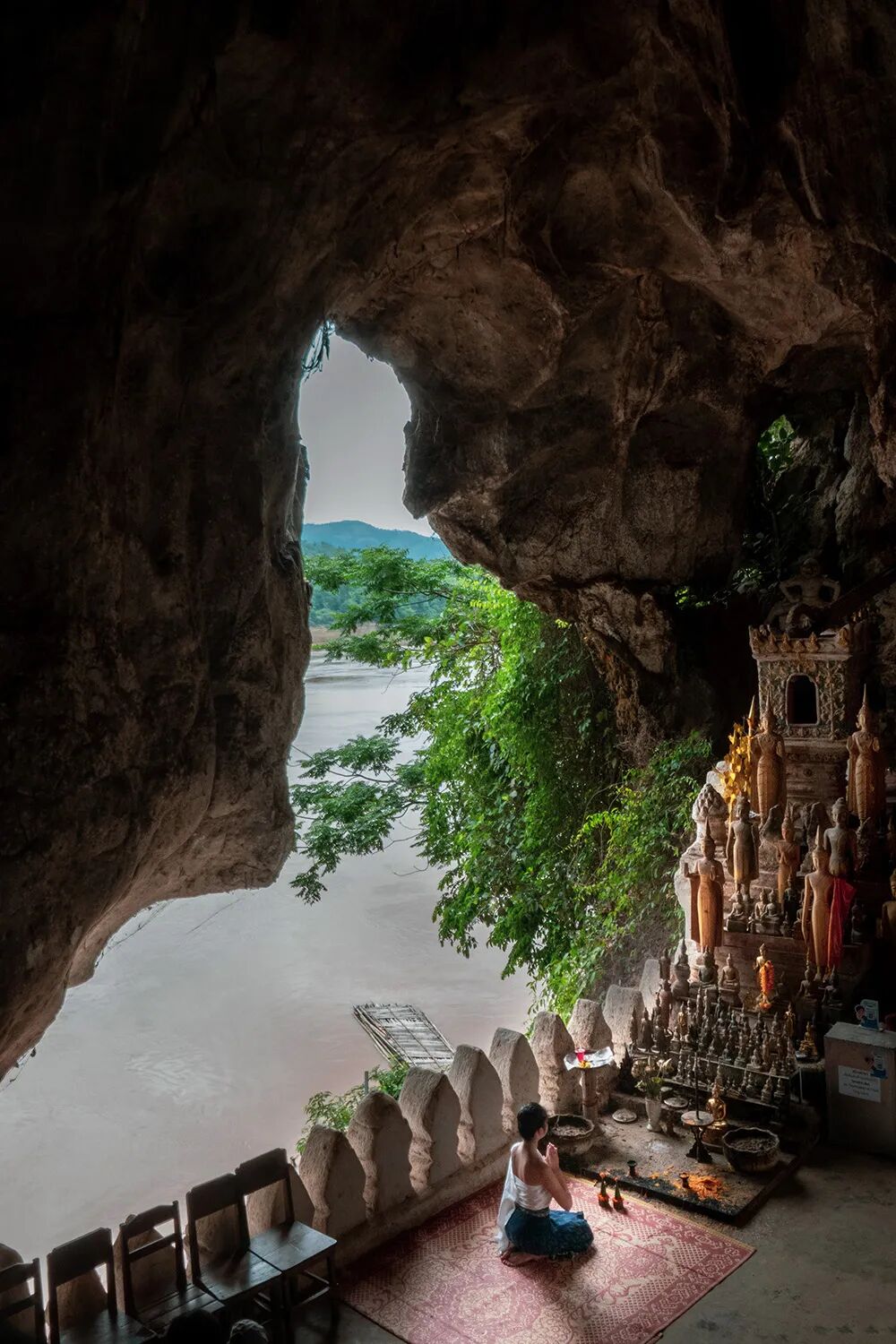 在酒店用罢早餐,我又乘车前往了位于湄公河畔的巴乌溶洞。巴乌溶洞仿若大地深处的神秘宫殿,洞内怪石嶙峋,钟乳石形态各异。在微弱的烛光下,它们仿若在诉说着远古的奥秘。