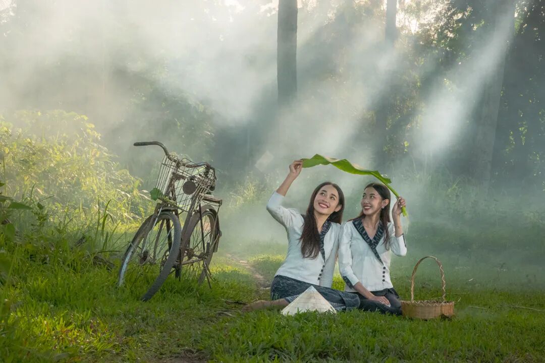 我猜,应该是初夏的阳光,是悠悠的稻香,是澜沧江的水,是织布机边的歌谣,是寺庙里的晚钟,是夜空的繁星,是山间的清风,是炉火边的传说,是集市的烟火,是长辈的慈爱,是伙伴的欢笑……是这一切的美好与温暖,才孕育出如占芭花般娇俏明丽的老挝少女吧?而最为动人之处,乃是她们对此浑然不觉,只是自顾自地美丽着,恰似造就她们这般美好的一切。
