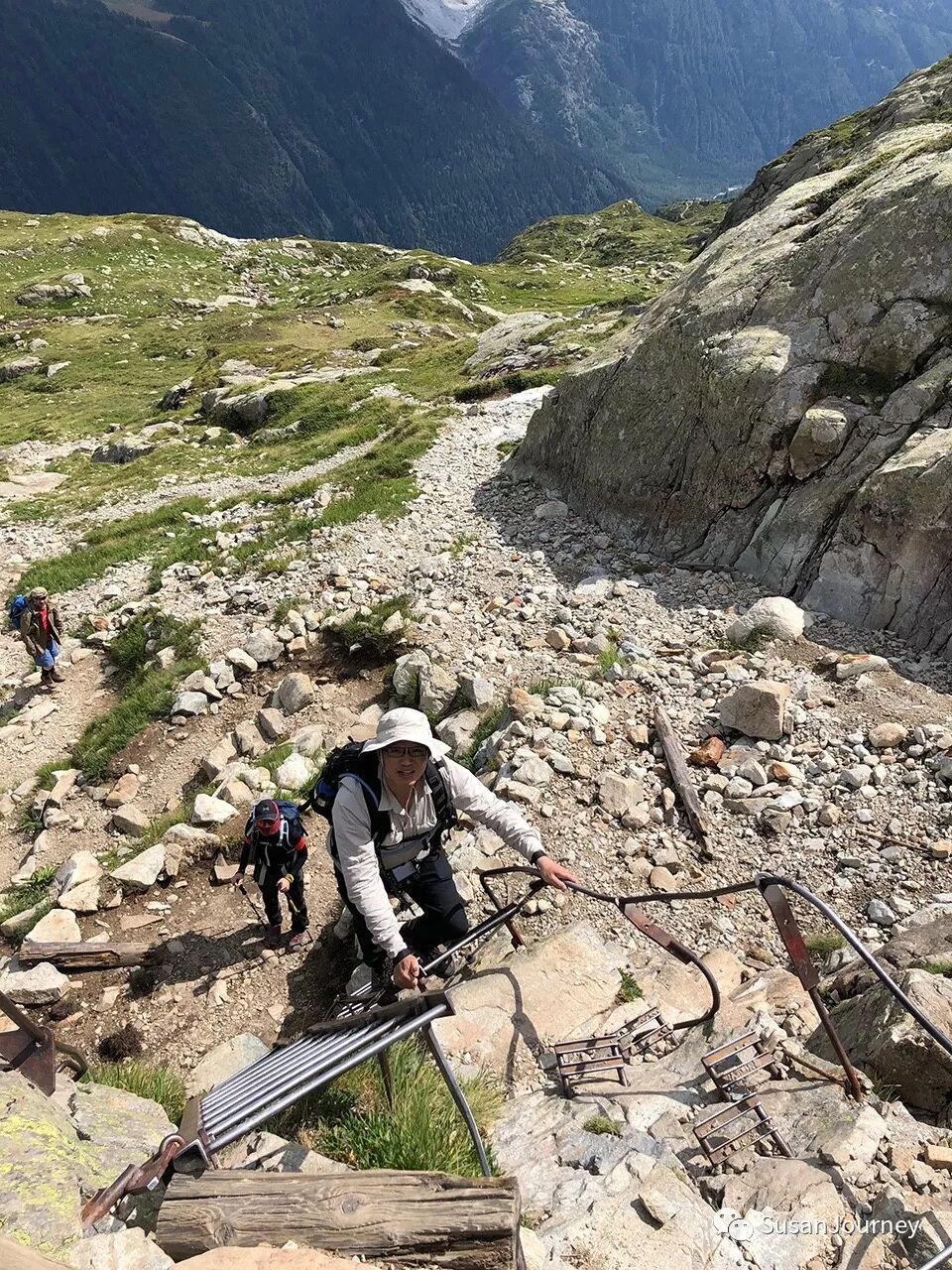踩着此行的第一个水泡,开始徒步翻越Mont le saxe峰。