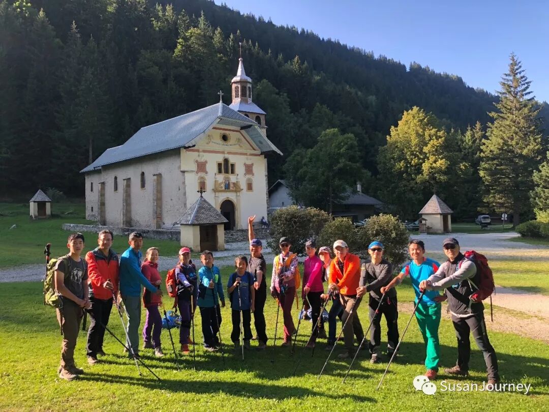 下陡坡、踏冰雪、跨溪流……徒步的终点,是山谷间阳光斜照的圣母院修道院。碧草芳芳,庭院静谧,是欣喜,是不舍,无论心中是何感受,156254步走来,勃朗峰大环线的最后一程到此结束。