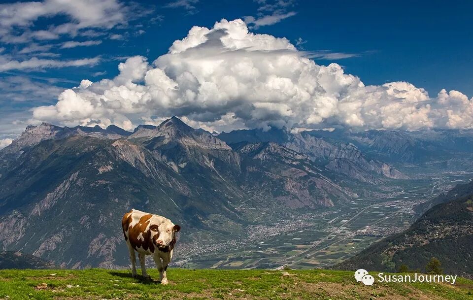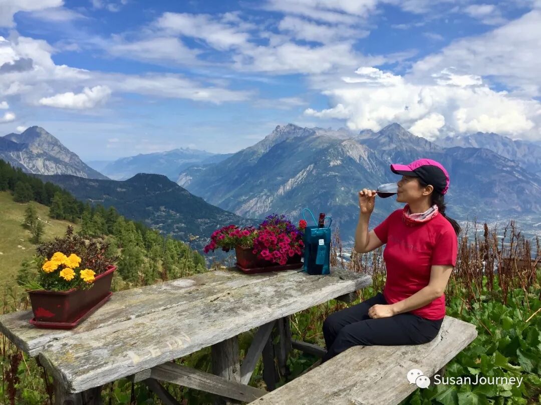 从法国穿越到瑞士,耳畔是牛铃声声,脚下是蜿蜒的群峰,来一杯葡萄酒小憩片刻,一山、一湖、一花、一木……都宛若桃源。