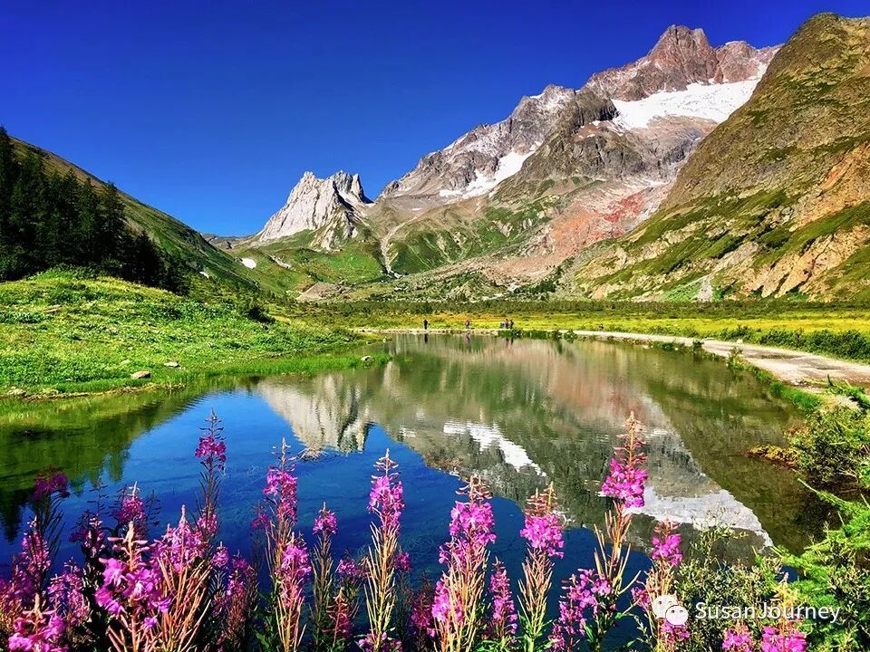 我只知道,当我用双脚触碰阿尔卑斯山连绵不断的冰川雪峰,用双眼抚摸高山中的湖泊和牧场,这条与野生羚羊一起徜徉、开满鲜花的小路,从此在我心中,便一端通向现世,一端通往灵魂。