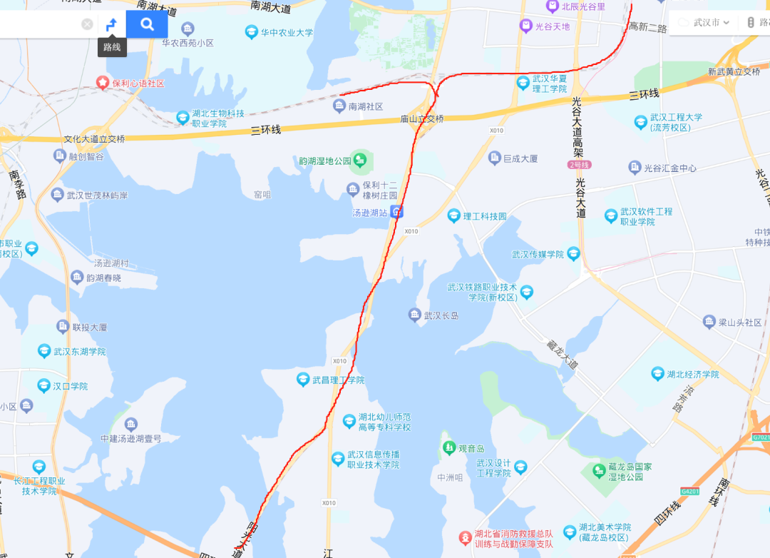 而后来流传出的9号线一期规划图也确实不经过东湖,在汤逊湖那边也是沿着江夏大道走,对湖泊资源没有太大的影响。