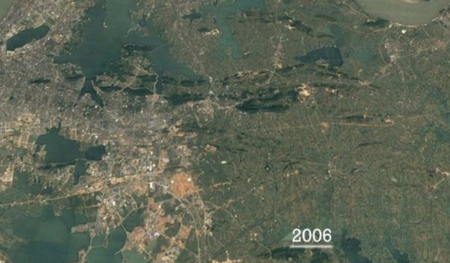 在2007年以前,光谷东那块还是农村,从2006年的卫星地图上可以看到,光谷东那时处于未开发的状态。