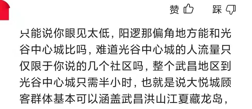 我一直觉得正视不足才能正确地改正,才能真正地发展起来,盲目地自嗨,只会蒙蔽了自己的双眼。光谷东才发展,而光谷三环内发展了很久,商业基础很强,未来光谷东的商业能不能打败光谷广场或者和光谷广场齐头并进,需要时间去证明。
