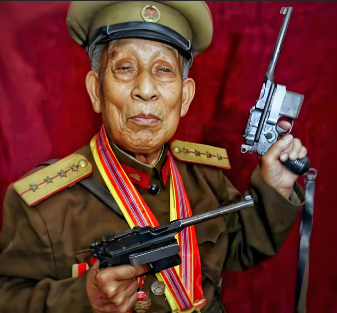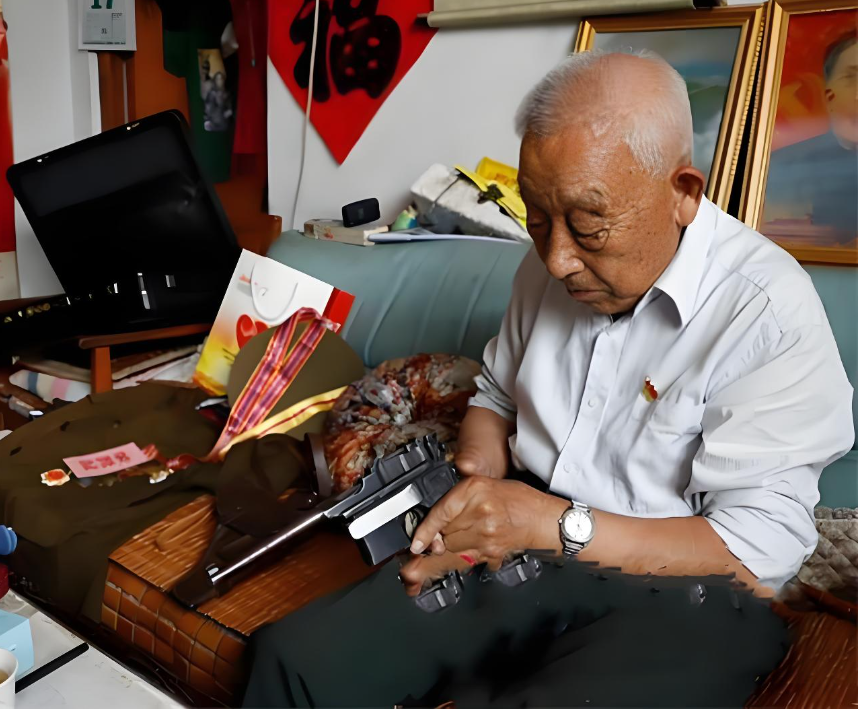 他手中握着的两把枪,一把是开国中将廖容标奖励的,一把是开国大将粟裕亲手挂上的,谁敢不服?因为这两把手枪特殊,但是又不能放任不管,最后相关部门想了一个两全其美的办法,他们将子弹收缴,而将这两把枪留下,给老人留个纪念。