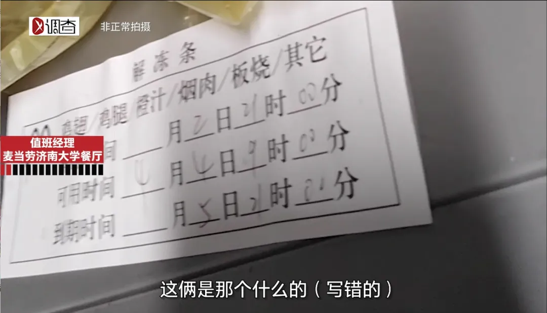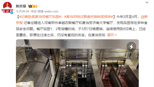 参考资料:新京报:《卧底麦当劳两家餐厅:过期食材换签“续命”,偷工减料节省成本》