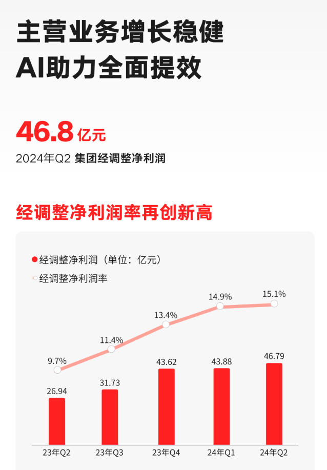 经调整净利润达46.8亿元,毛利率和经调整净利润率均达到单季新高,分别为55.3%和15.1%