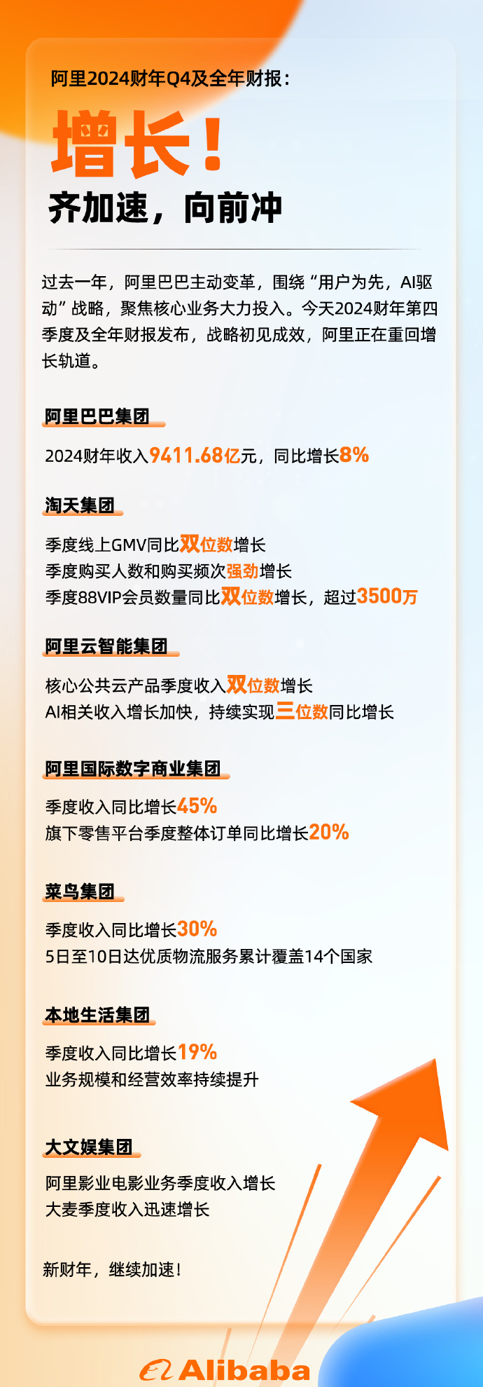 5月14日,阿里巴巴集团发布2024财年Q4及全年业绩。