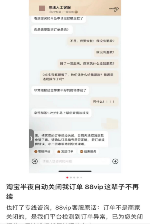总之,淘宝88VIP深夜退单事件引发了消费者对平台信誉和消费者权益保护的关注,希望平台方能够尽快给出回应并采取措施解决问题。