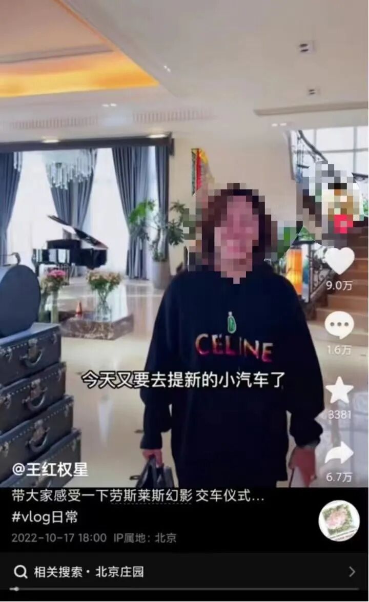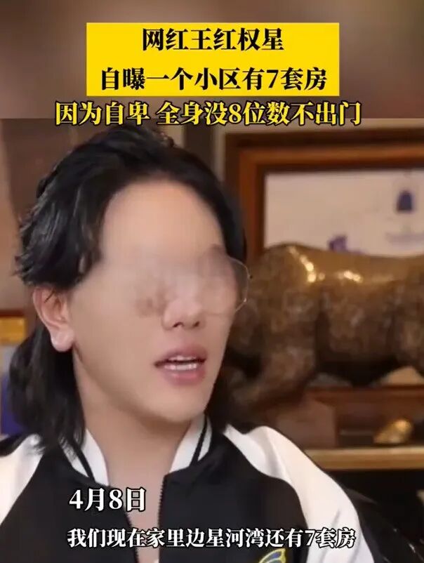 据悉,王红权星在社交平台上展现出的“富豪生活”曾引起不少争议。他曾自称在北京一个小区拥有7套房产,采访时还公然声称:“如果身上的装扮加起来没有8位数,不会出门。”